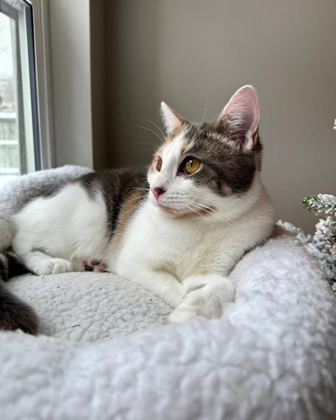 I live with other cats and dogs in my foster home and have impeccable litter box manners. I am fully up-to-date on vaccinations, spayed, and ready for adoption. My adoption fee is $150. I am being fostered in Westfield, IN.